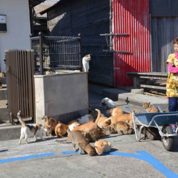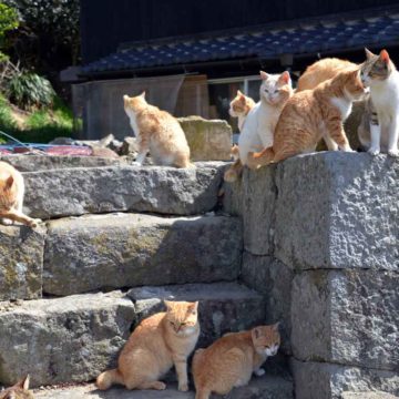 Viele Japanerinnen und Japaner sind vernarrt in Katzen. Auf manchen Inseln leben sogar mehr Stubentiger als Menschen. Besonders beliebt bei den Samtpfoten ist die kleine Insel Aoshima. Auf dieser Insel gibt es keine Sehenswürdigkeiten und keine Geschäfte – nur sehr viele Katzen. Täglich fahren Menschen mit der Fähre auf die kleine Insel, nur um dort wilde Katzen zu füttern und zu streicheln.
