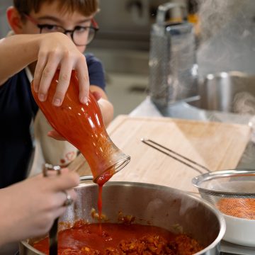 Was du für diese Soße tun musst und wie man darüber hinaus seine eigene Pasta herstellt, haben unsere Kinderreporter herausgefunden. Gemeinsam mit Köchin Sandra Kollegger haben sie in der Küche der steirischen Volkshochschule groß aufgekocht und unser Rezept ausprobiert. Dabei haben wir sie auch dieses Mal wieder mit einer Kamera begleitet und gemeinsam mit der Arbeiterkammer Steiermark ein Video gemacht.