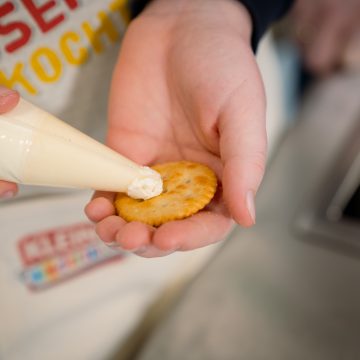 • 40 Gramm Käsewürfel, 40 Gramm Speck- oder Schinkenwürfel