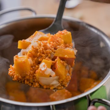 Rezept für Kürbissuppe mit Linsen und Apfel