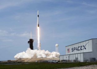 Bald ist es so weit: Vier Touristen steigen in eine Rakete und düsen Richtung Weltraum.