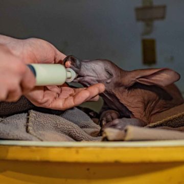 „Wir waren überglücklich, als wir den Neuankömmling zusammen mit Mama Oni (8) und Papa Koos (6) entdeckten“, schrieben die Mitarbeiter des Zoos auf ihrer Webseite. In den ersten Wochen mussten sich die Tierpfleger viel um „Dobby“ kümmern. Die Eltern von „Dobby“ waren ein bisschen unbeholfen, erklärten die Tierpfleger. Das Junge musste alle paar Stunden mit der Flasche gefüttert werden. Ob es ein Mädchen oder ein Bub ist, steht noch gar nicht fest. Der Spitzname aber war sofort klar: Wegen seiner Ähnlichkeit mit der beliebten Harry-Potter-Figur wurde das Junge auf den Namen Dobby getauft.